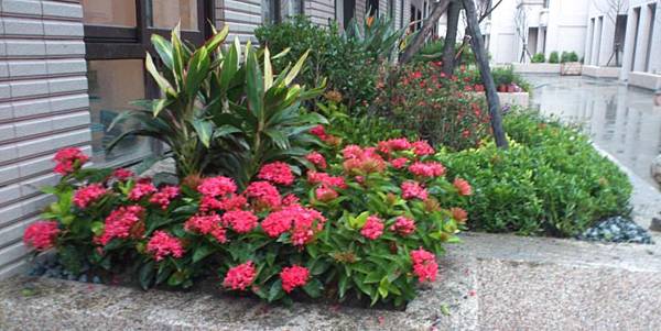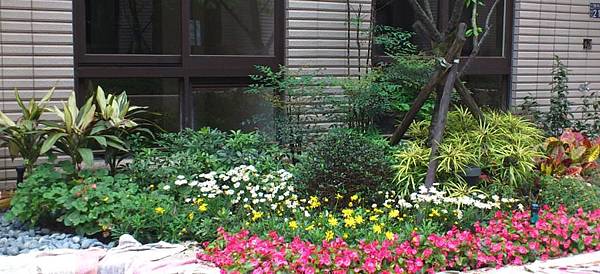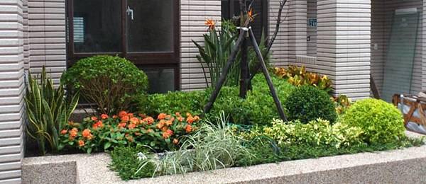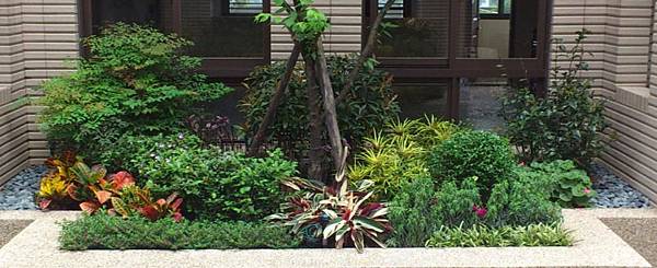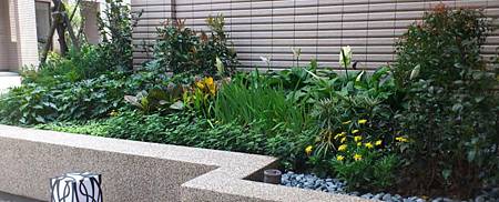 悅莊花台共38組,原來在設計上僅用6個type,填滿複製。但施作過程中設計師基於對自己的挑戰,不甘於按原來自己設定的圖施作,也因長時間待在現場觀察出每個角落微環境條件不同,配合環境用專業判斷選出可能種類後。再依高低、植栽姿態、疏密、葉色質感,創造植物多層次花台。植物使用種類竟超過百種,這在一般建案來說是少有的,在這樣的面積同時呈現可以說是唯一的。