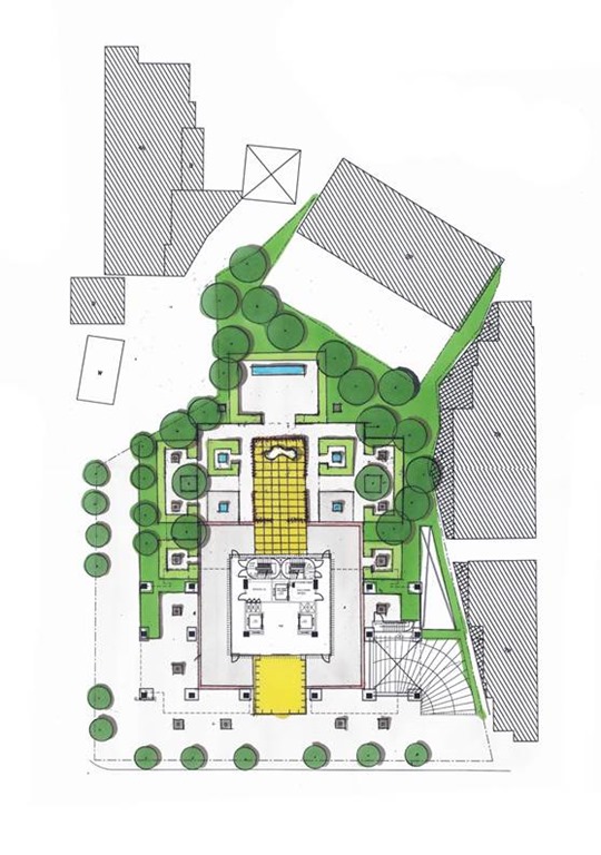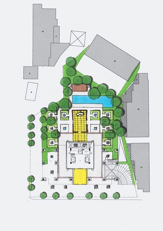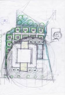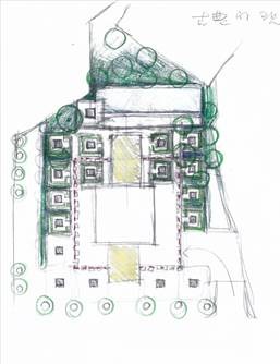 方案一配置發展構想 基地邊緣上有一條角度的線,根據這條基地線而成為我們這次發想的概念,將空間配合基地線做一個旋轉,與不停地畫了很多草圖,是很有趣的一個構想,結合一些不同層次的牆面,配合水與綠地而成為我們初步設計-現代極簡 草圖發展過程 concept 方案二配置發展構想 方案二是以觀賞性質為主,演化出同一語彙的時尚光之花台,加上水與樹的點綴,衍生出玻璃屋的概念,創造出一個又一個的小空間概念-現代時尚 草圖發展過程 concept